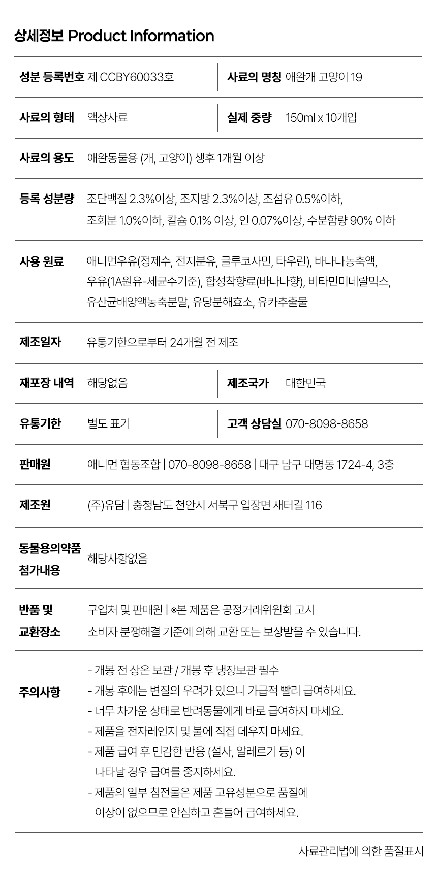 애니먼 펫밀크 바나나맛 애니유 강아지 고양이 우유 150ml x 10개입SALE