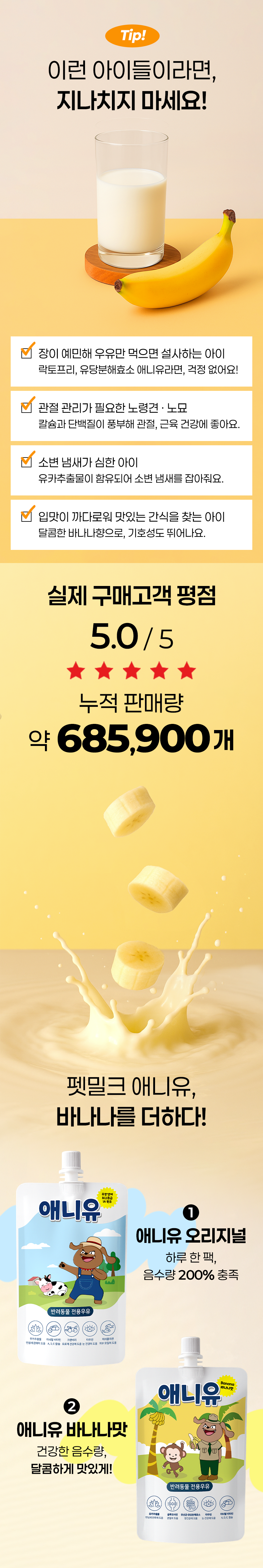 진짜 락토프리 펫밀크, 바나나맛 애니유